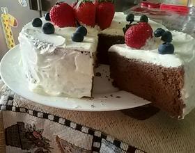 - 18. 淡奶油200克,糖20克,打成可流动性,浇在蛋糕上,加水果装饰。OK