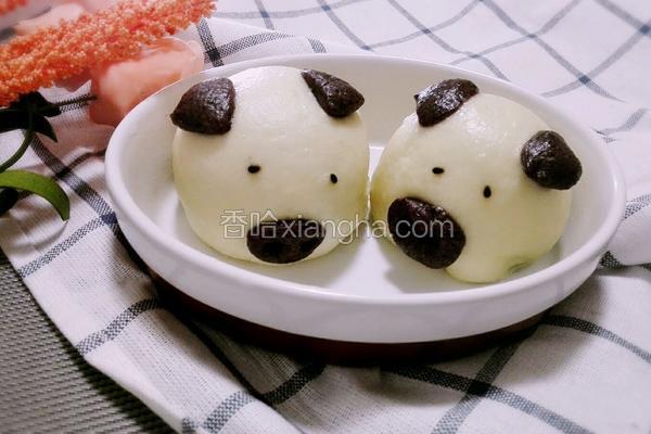 8.沾点水沾在豆包上,再用一点黑米面团团圆粘上当鼻子,用筷子插两个孔,用黑芝麻当眼睛!