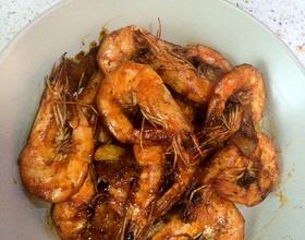 油八成热放入大虾,翻炒几下放入葱姜蒜继续翻炒均匀