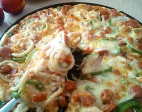 所有材料铺好在铺一层芝士,烤箱预热200度中层烤20分钟
