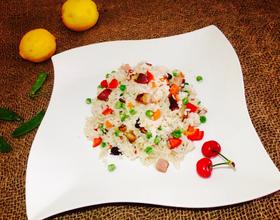 我的是隔夜饭,这样不容易粘锅,炒出来的米饭一粒一粒的,腊肉的熏香和蔬菜的清香搭配出特别的味道!