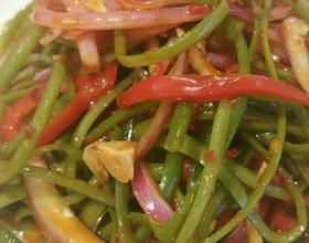 蒜苗撕条,洋葱切丝,红辣椒切丝