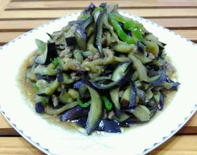 茄子洗净切丝,青椒洗净切丝,小米椒洗净切碎,肉末用生抽腌制