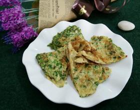 倒入蛋液,用锅铲摊开,煎好一面翻面再煎另l面