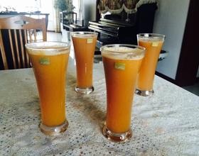 同理,把梨子榨出来两杯,总四杯,开喝吧。