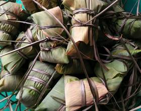 - 1. 择洗净粽叶和粽榈,粽叶减去头尾,两样用开水烫过更好