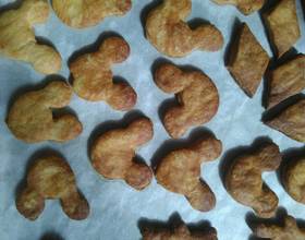 擀成面片,用刀切成菱形,或用模具定型。烤箱预热180度10分钟。170度烤15分钟。