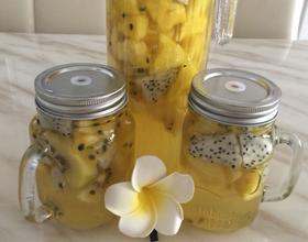 各种水果分装在事先清毒好的水果茶杯里,倒入烧好的巴西果糖水,稍凉后放入冰箱冷藏三小时,味道更佳。