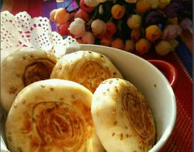 - 2. 面粉加酵母用35度左右的温水活成稍软的面团,醒发至2倍大。排气后擀成四方形的大片儿。均匀抹上芝麻酱。