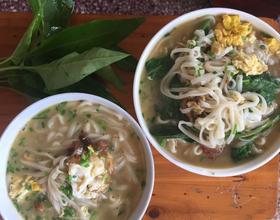 面条熟后放入调料(酱油、盐、胡椒粉),再放上空心菜,最后撒上葱花。