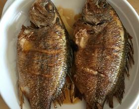放入黑鲷鱼两面煎至金黄色。