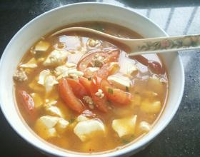 锅烧热入油,入豆腐脑,加适量白水,烧开,加入西红柿,再烧开加入面条鲜提色提味,加入鸡精和葱花
