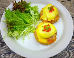 这款早餐最难的应该是糖心蛋,鸡蛋一定要新鲜的出来的糖心蛋才比较整,要常温蛋哦!火候一定要注意看清楚菜谱!打荷兰汁的时候黄油要慢慢倒入,边打边倒!荷兰汁如果只用照片的量可以做三份,但是我尝试过只打一个蛋黄,效果不理想,如果用不完可以做沙拉酱一举两得!