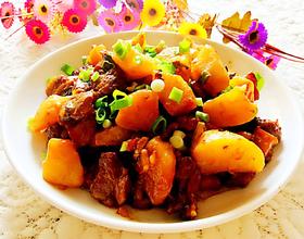 - 12. 炖好收汁的样子,加适量的鸡精,切点葱花翻炒均匀即可。