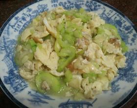 盛起鸡蛋之后,锅中再放入适量的花生油,然后油热后,加入丝瓜翻炒,丝瓜很容易熟,炒一会就可以了
