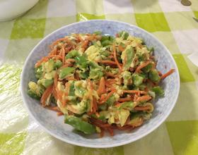 锅里放油烧热下香葱炸一下,把胡萝卜青椒都放进去,根据自己喜欢的口味放调料