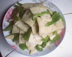 放入青椒中火翻炒几下后放入盐少许,糖少许