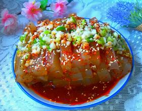 切凉粉的时候容易粘刀,切之前刀用凉水冲一下就不会在粘刀。