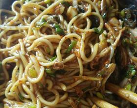 淖凉面,面是菜市场面坊做的,形状是圆的,这种面不易煮烂,有劲道,记得煮八成熟就好