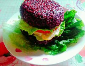 ①煮好后的米饭一定要焖几分钟,待米饭凉透后,再进行做,否则米饭热的话,会烫伤手。②做米饭饼,最好有圆形模具,没有的话,可以像我用碗代替圆形模具;③要是有沙拉酱的话,米饭汉堡味道更一流④如果你觉得西红柿味太酸的话,可以换成其他食物,馅料可根据个人喜欢来做;