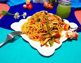 煮好的意面不能放在凉水中,放点橄榄油搅拌均匀!喜欢酸的可多放点番茄沙司!黑胡椒粉有辣味,给孩子吃要少放点!