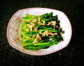 放入菜芯,大火爆炒,放盐调味,放少量水,盖锅盖焖一会。