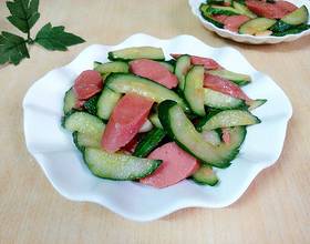 2、火腿肠、黄瓜、可按自己喜欢的形状来切。