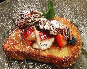 摆上自己喜欢吃的水果、坚果,筛上一层糖粉,淋上少许蜂蜜,即可享用美味的法式吐司了。