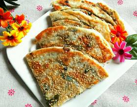 油热后把饼放进去,两面煎黄至熟熟可以了。葱的味道满屋飘香。