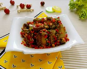- 8. 排骨蒸好后,将排骨上面的蒜沫去掉。