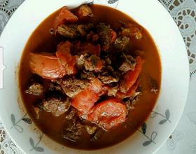 - 7. 铁锅热油少量,葱姜爆香,倒入西红柿,翻炒2分钟,将炖好的牛肉倒入,大火炖3分钟即可。