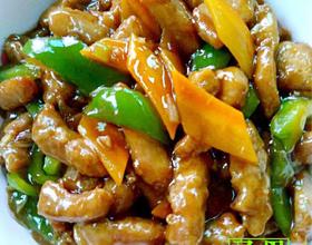 - 2. 利用腌肉时间将葱蒜切末备用'胡萝卜'柿子椒切片备用。