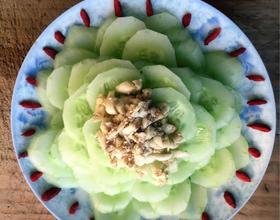蒜蓉料铺在黄瓜上面!把枸杞摆成一朵花!漂漂亮亮的凉拌黄瓜好了