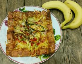 铺上一层蔬菜丝和培根,再撒上多多的芝士,搞定~