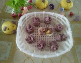 面粉紫薯粉酵母粉白糖盐混合过筛