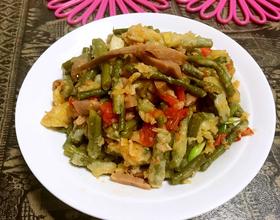 先加入鸡蛋拌过豇豆后再加入面粉,忘记拍照了,一定要用鸡蛋液拌过后才好挂面。