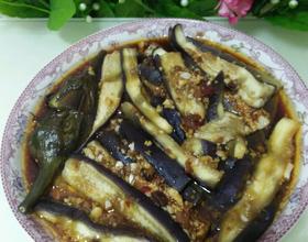 然后另起个锅,锅里烧热油,把上面调好的料倒入整个淋上茄子,把烧好的高温油倒进去,再加点香油。