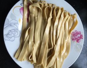 揉搓的面团一定要偏干,面条才有劲道,宽窄和厚薄可以自己擀成面皮时自己掌握