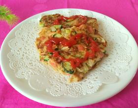 鸡蛋打入小盆里,将黄瓜切碎,火腿肠切碎放入盆里,再放入孜然粉,盐,味达美酱油,花椒水,还要加适量的面粉搅拌均匀