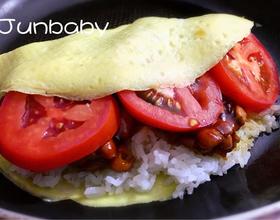 - 11. 热锅刷上少许底油,小火倒入鸡蛋液摊平,鸡蛋表面半凝固状态关火(用余温浸熟)