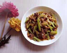 倒入泡菜和芹菜,放适量盐翻炒,起锅前放点鸡精。