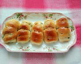 面团排气滚圆醒十五分钟,再擀开,撒上香葱。