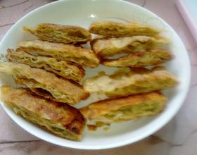 锅里油烧热,调到小火,把肉饼放进去,两面金黄馅熟了夹出来,切两半摆盘。
