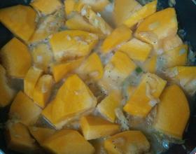 南瓜炖的时候,快熟了就别动,要不就烂了。