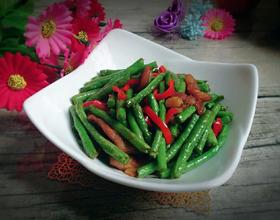 将蒜丟进去炒香,再倒入缸豆炒5分钟,再倒适量鱼露进去