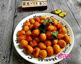 - 13. 然后把炸好的鹌鹑蛋放去一起炒