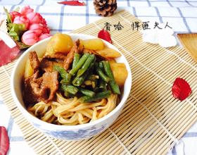 1.面条不要买太细了,太细容易断,做出来的焖面都是碎的。2.加入汤后要把火关成中小火,期间要注意不要糊锅,因为有土豆,土豆熟了就会粘锅,多观察。3.肉选成五花肉最好,我今天没买到好的五花肉就用的瘦肉。
