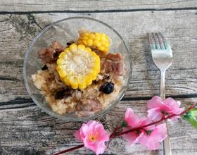 做这道糯米排骨饭,糯米需提前浸泡三小时以上,让糯米吸足水分,浸泡好的糯米稍微沥干水跟其他食材加入适量的调料一定要加些许的水,蒸出来的糯米饭口感才会香软,不会夹生哦!