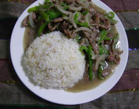 锅内热油,将洋葱杭椒爆锅,可加少许盐
