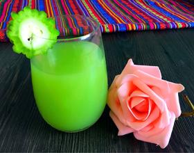 将青苹果,苦瓜加入九阳破壁料理机中加适量水接通电源启动开关制作成汁